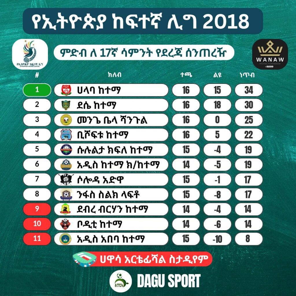 የደረጃ ሰንጠረዡን ሀላባ ከተማ ከተከታዩ ደሴ ከተማ በአራት ነጥቦች በመብለጥ በ34 ነጥብ 1ኛ ደረጃ ላይ የሚገኙ ቡድን ሲሆን ንፋስ ስልክ ላፍቶ 17 ነጥቦችን በመሰብሰብ 8ኛ ደረጃ ላይ ይገኛል።