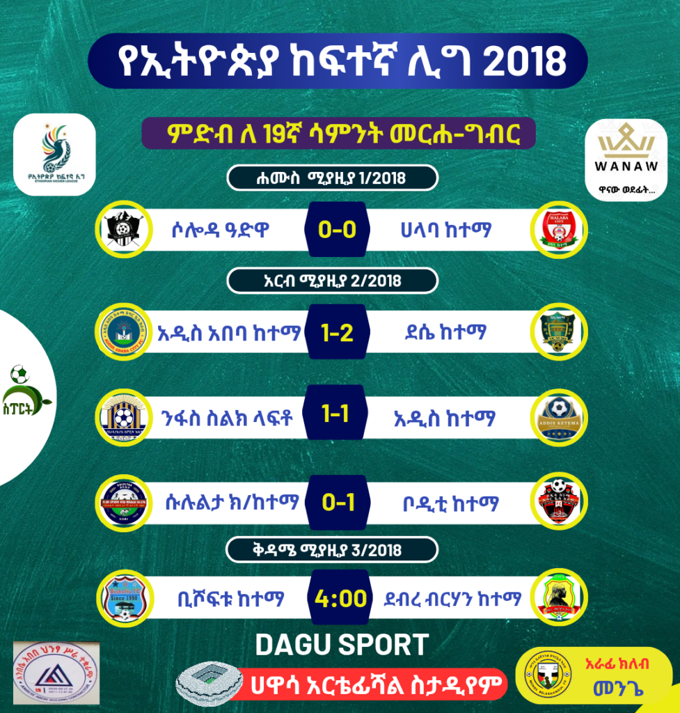 የኢትዮጵያ ከፍተኛ ሊግ ምድብ ለ19ኛ ሳምንት ሁለተኛ ቀን የ3:00 ሰዓት ጨዋታ ደሴ ከተማ አዲስ አበባ ከተማን 2 ለ 1 በማሸነፍ ከመሪው ሀላባ ከተማ ጋር ያለውን የነጥብ ልዩነት ወደ አንድ ማጥበብ ችሏል።